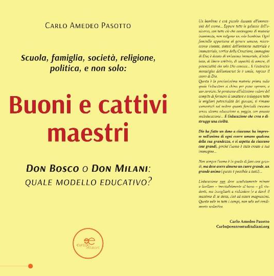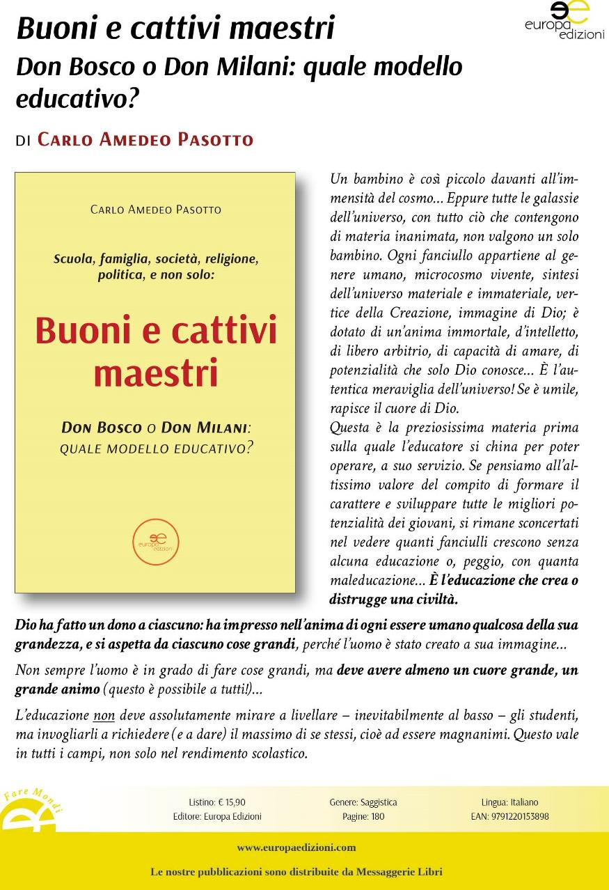 7. Buoni e Cattivi maestri. Don Bosco o don Milani: quale modello educativo?, Europa Edizioni, 2024 (€ 15). Da prenotare in libreria o reperibile in internet;