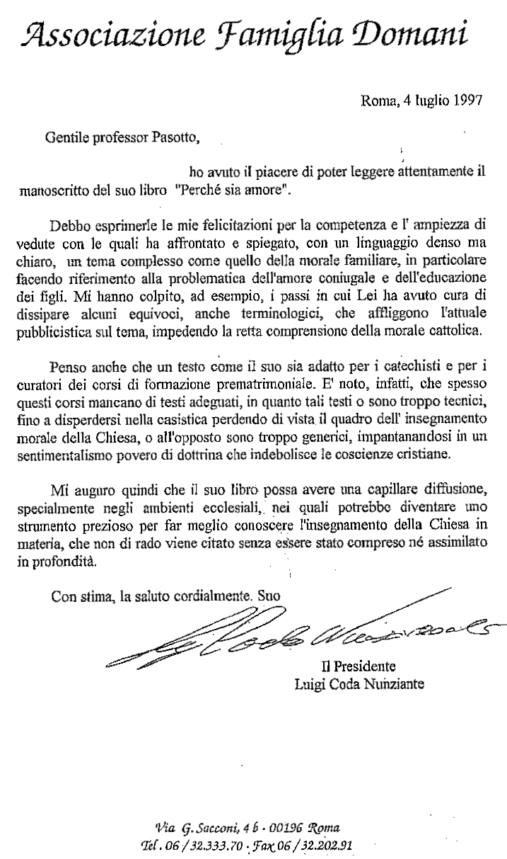 3. Perché sia Amore, Edizioni Segno, 1998 (€ 12). Reperibile presso Centro Studi Italiani;