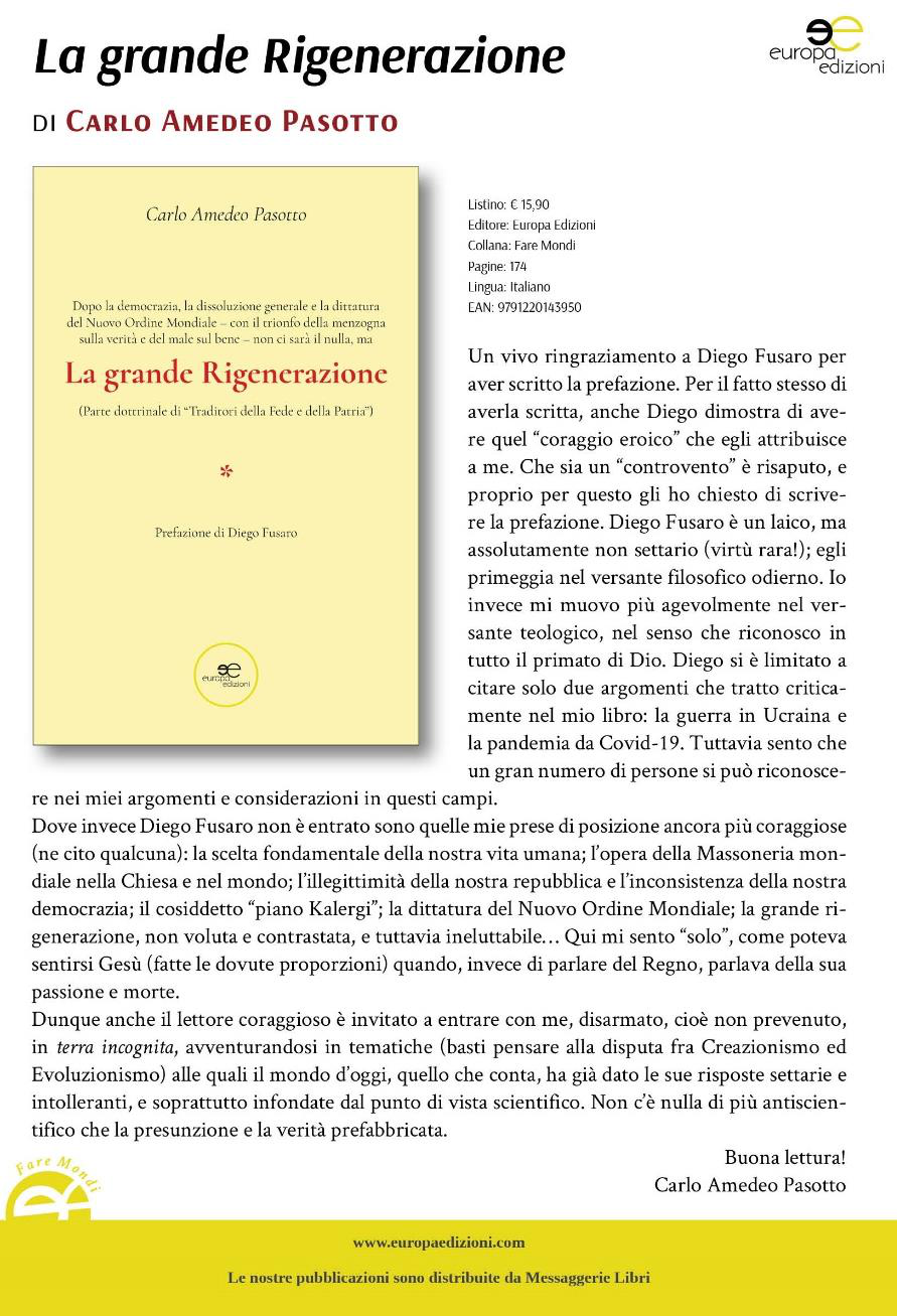 5. La grande Rigenerazione, Europa Edizioni, 2023 (€ 15). Da prenotare in libreria o reperibile in internet;